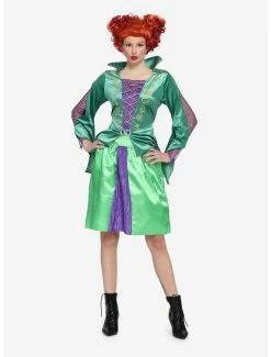 Ready to run amuck, amuck, amuck with the Sanderson sisters this Halloween? Dress up like Sarah Sanderson with this Hocus Pocus bustier top! Features a corset-style bodice with an allover pattern inspired by her outfit in the film. Comes with a raw edge peplum and mesh spider web long-sleeves. Back zipper closure.